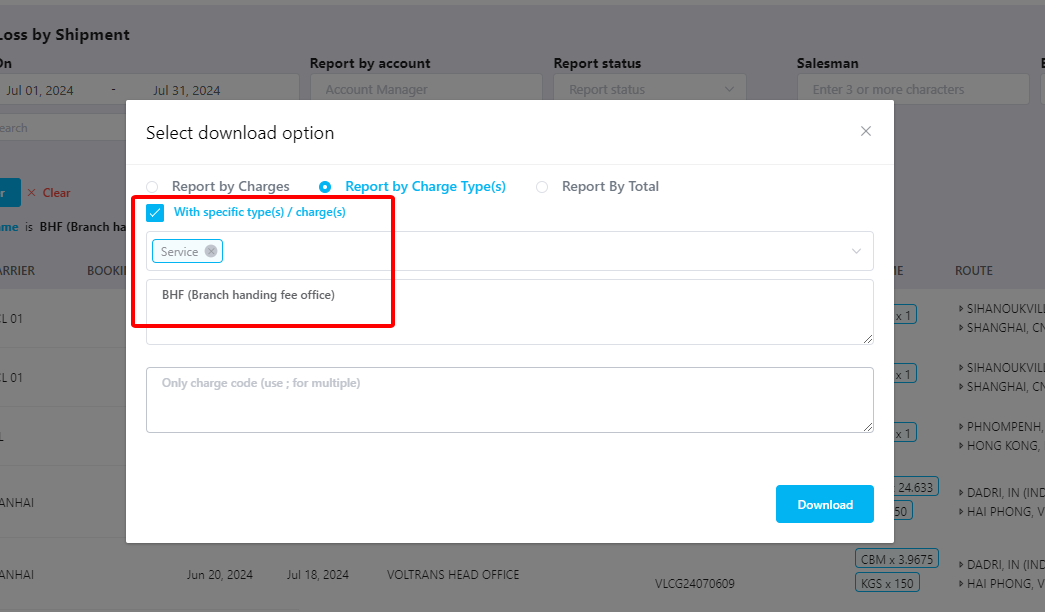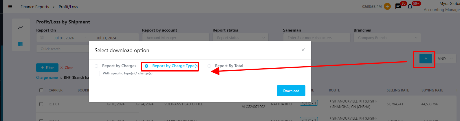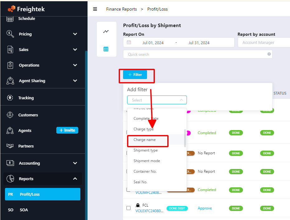 Input the charge name to retrieve the corresponding Profit/Loss data.